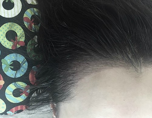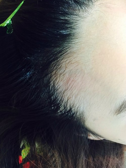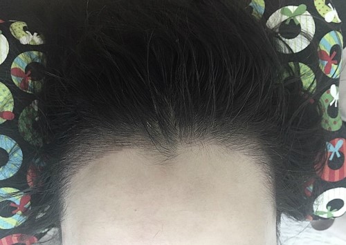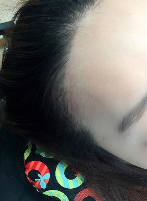 오른쪽 헤어라인반영구 시술 전 확대사진입니다. 가까이에서 보니 빈 공간이 심한 헤어라인,