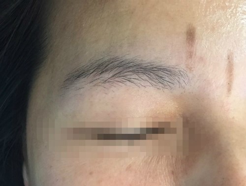 많으셨습니다. 최대한 일자 눈썹과 얇은 여성적인 눈썹문신으로 디자인하여 시술을 진행하였으며,