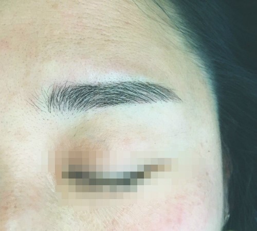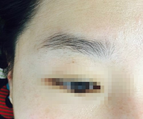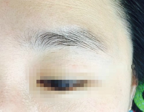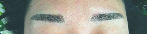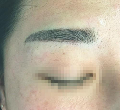 눈썹문신 시술을 진행하였습니다. 앞쪽과 뒤쪽의 숱이 적은