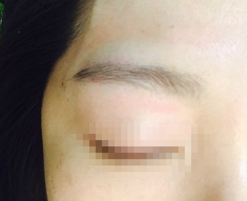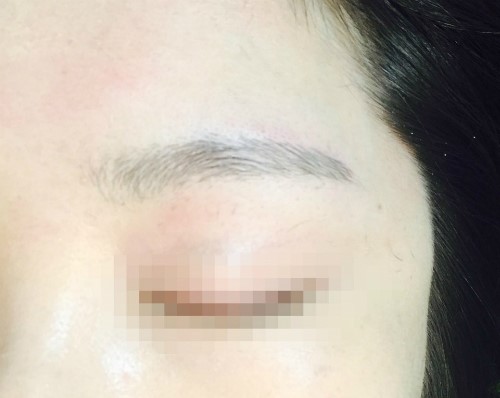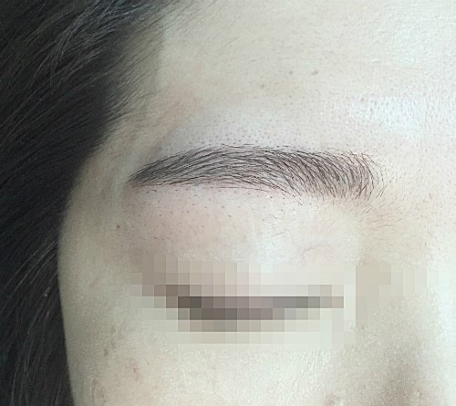 시술을 진행하였으며, 다소 뭉툭한 눈썹의 모양을 조금 더 얇게 여성적인 눈썹의 모양으로