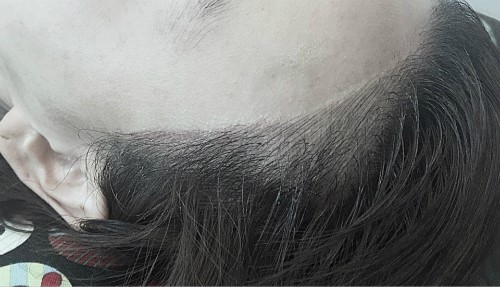 오른쪽 헤어라인반영구 시술 전 확대사진입니다.