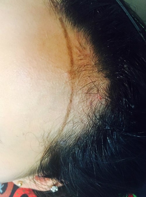 오른쪽 시술전 확대사진인데요~ 중간중간 잔머리가 있는 부분을 따라 한올한올 헤어라인반영구