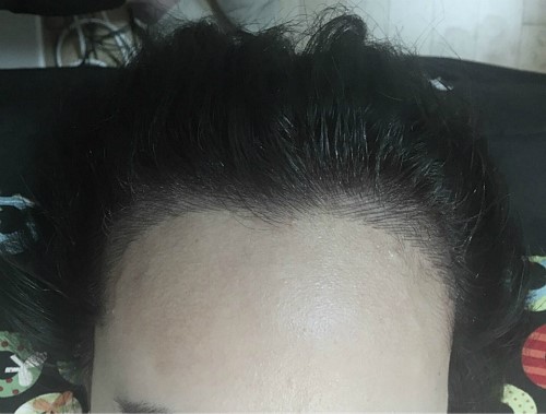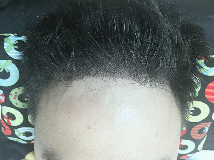 전체적으로 듬성듬성 빠지기 시작한 헤어라인 부분으로 들쑥날쑥한 헤어라인과 넓어진듯한 이마라인