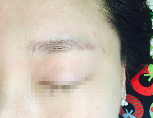 일자 눈썹 모양으로 눈썹문신 시술을 원하셨던 고객님이십니다.