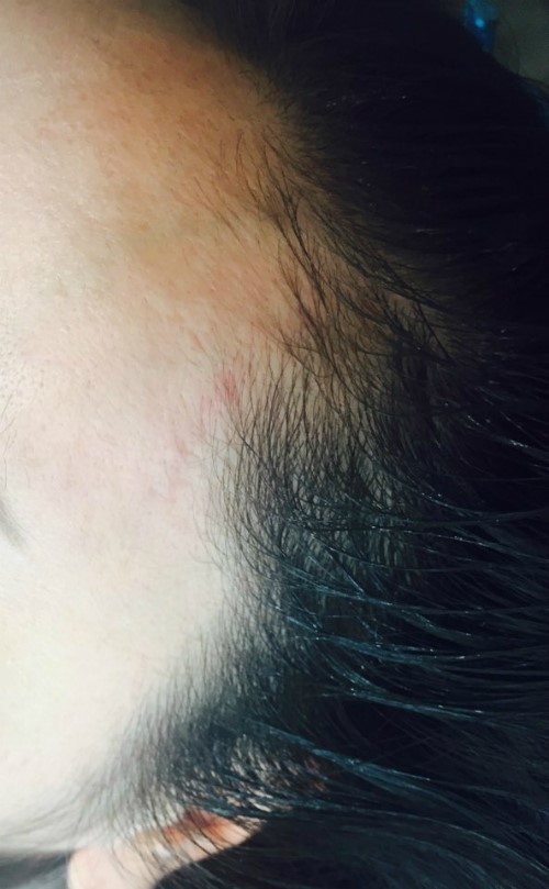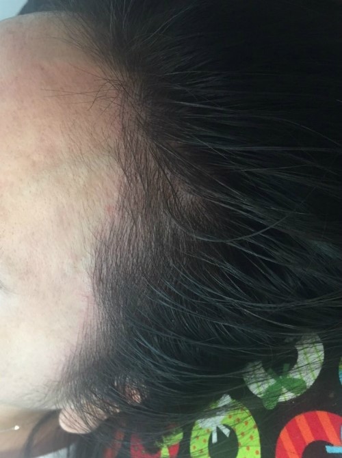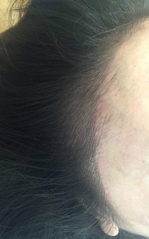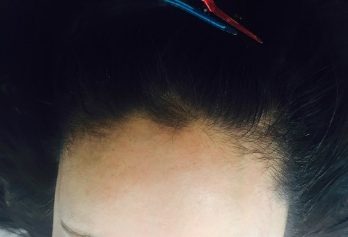 오른쪽 시술 전 확대사진인데요~ 잔머리는 많으셨으나 잔머리 사이사이에 보이는 빈공간들고